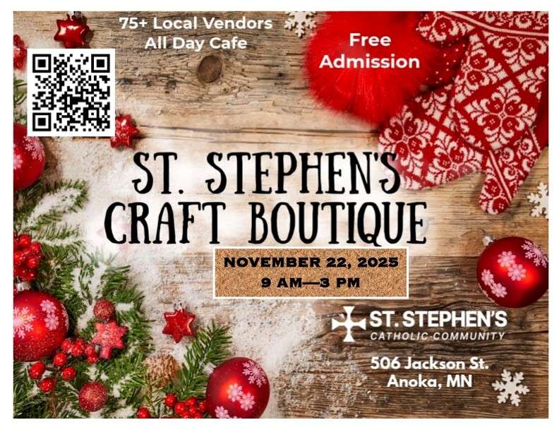 Thank you to everyone who has already sent in donations for our annual Christmas Basket program! It’s exciting to see students coming in each morning with items to help fill these baskets for families in need within our local community. Please remember that all donations are due by Thursday, November 20th. You can watch this special event live on the St. Stephen’s School Anoka Facebook page (link on the bottom of the newsletter) on Friday, November 21st at 7:40 AM, or look for photos afterward in our school updates. Thank you for helping us bring joy and hope to others this season!